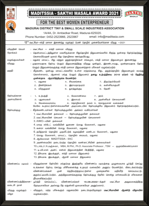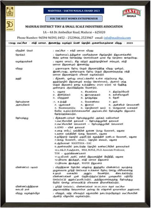 Maditssia - சக்தி மசாலா பெண் தொழில் முனைவோர் விருதுகள்